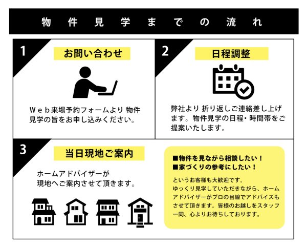 気になる物件のお問い合わせや、見学のご予約、 資料請求などどうぞお気軽にお問い合わせください。
